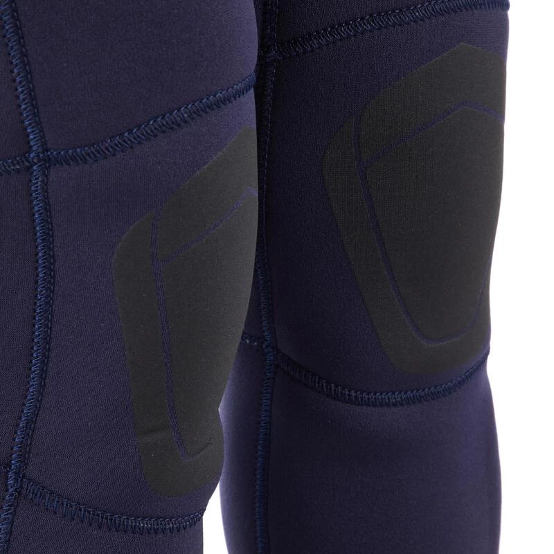 Les coutures sont cousues et collées pour garantir étanchéité et durabilité. La couture est dite « borgne », c’est-à-dire que le fil ne traverse pas toute l’épaisseur du néoprène, cela empêche ainsi l’eau de passer. L’absence de fils à l’intérieur permet d’éviter les irritations. Des patchs intérieurs de confort et de renfort sont disposés aux points sensibles.
