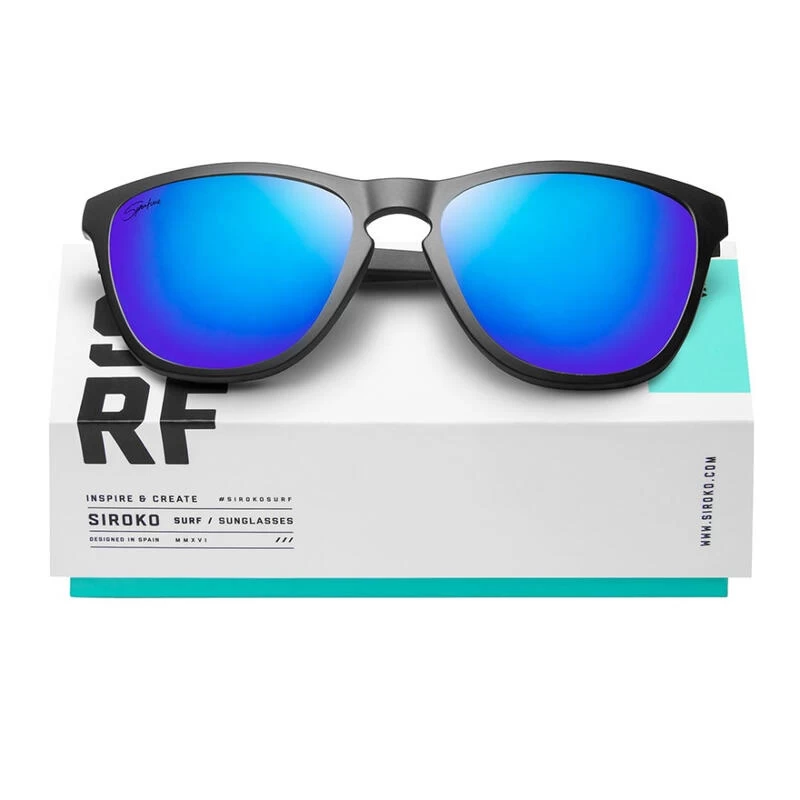 Lunettes de sport Siroko Hanalei avec monture noire en polycarbonate, verres polarisés bleu foncé effet miroir et protection UV400